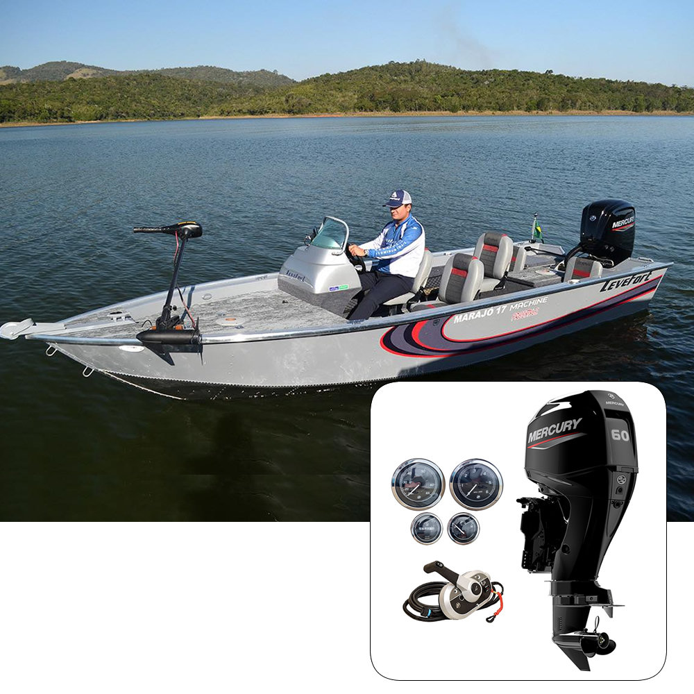 Barco Levefort Marajó 17 Machine Freestyle Special Series + Mercury 60 HP 4T Fat. PJ + Carreta Rodoviária+ Acessórios de montagem