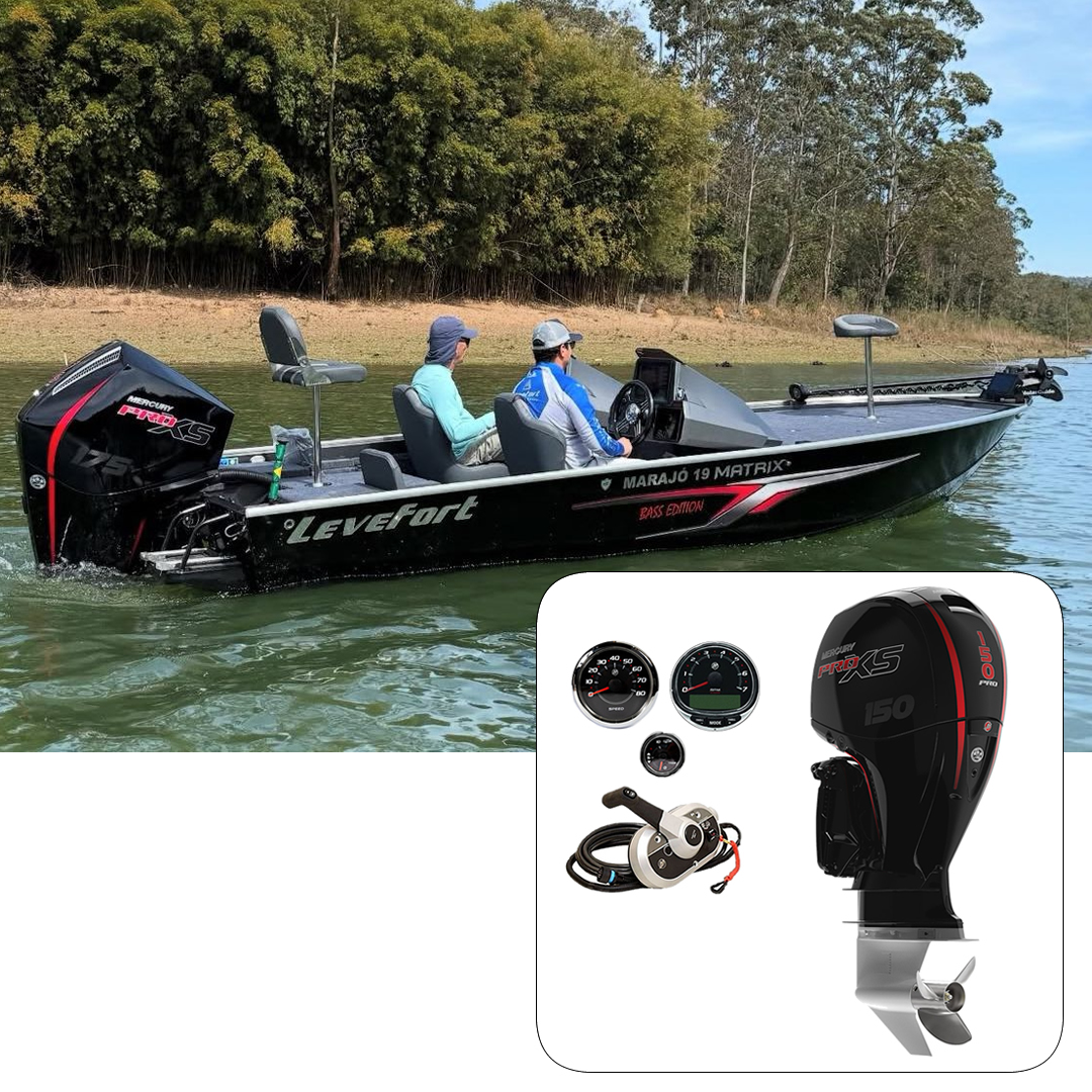 Barco Levefort Marajó Matrix 19 Bass Edition + Mercury 150 HP Pro XS Fat.PJ + Carreta Rodoviária Trucada + Acessórios de navegação
