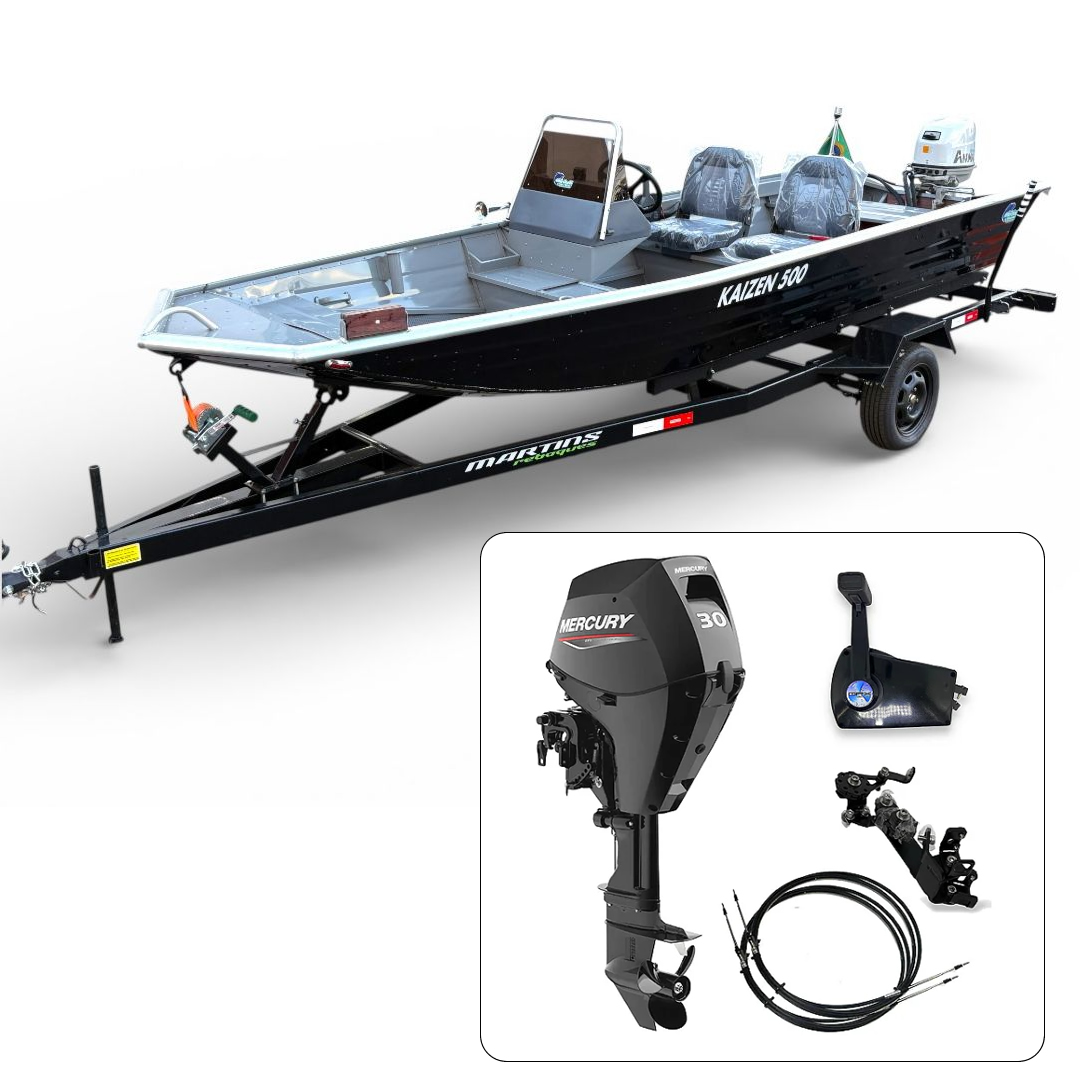 Barco Martinelli Kaisen 500 DC com motor Mercury 30 HP 4T Part. Elétrica + Carreta Rodoviária - Preço do motor para PJ ou Produtor Rural.