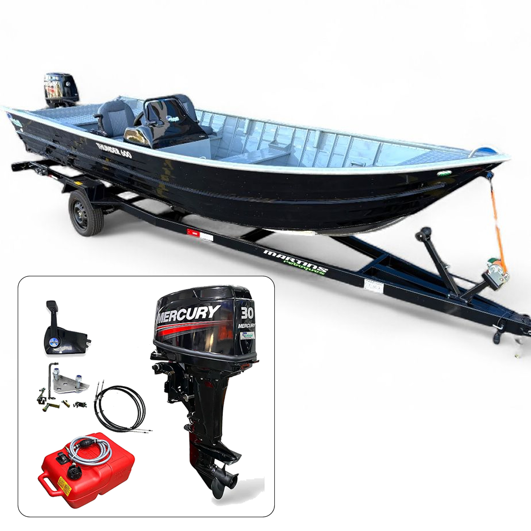 Barco Martinelli Thunder 600 + Mercury 30 HP 2T Partida Elétrica Fat. PJ + Carreta rodoviária e acessórios de navegação instalados