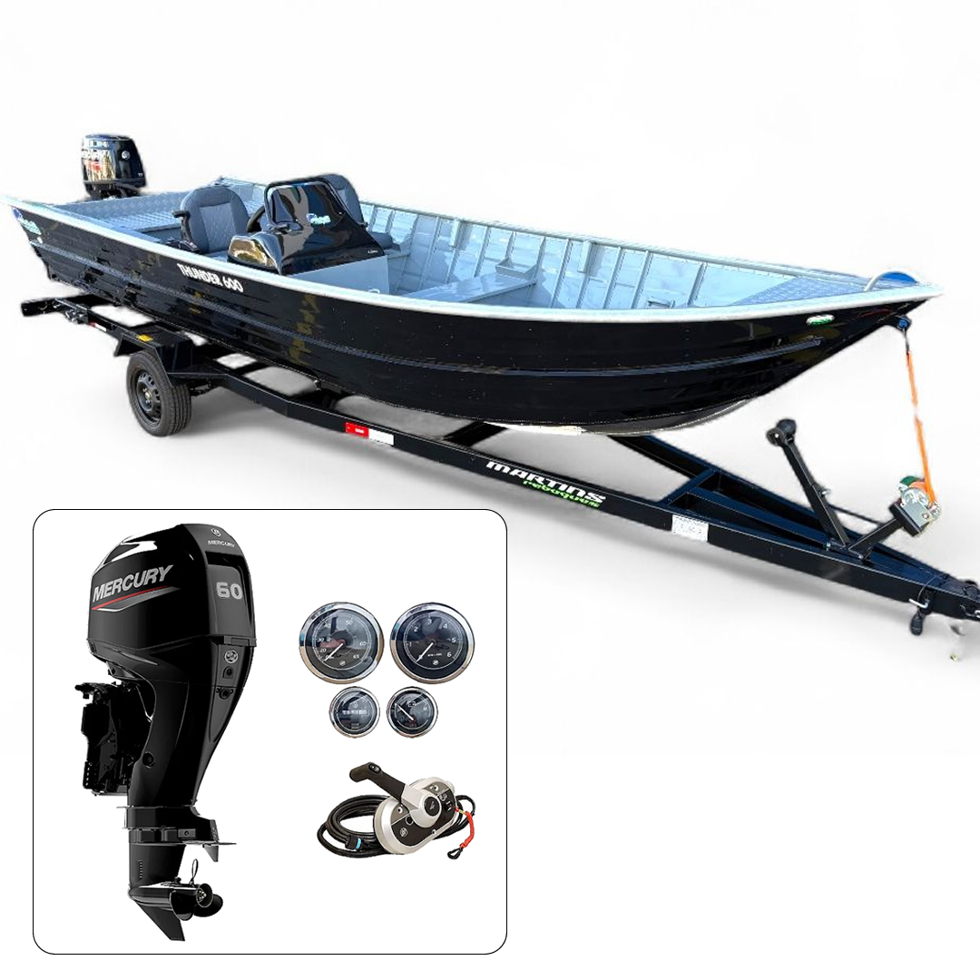 Barco Martinelli Thunder 600 + Mercury 60 HP 4T Partida Elétrica e Power Trim Fat. PJ + Carreta rodoviária e acessórios de navegação instalados