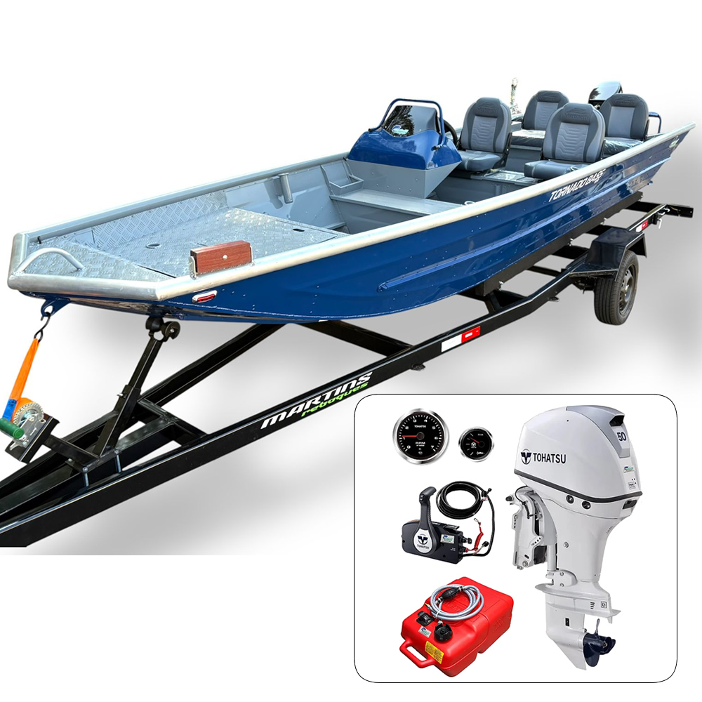 Barco Tornado 550 BASS SD com Tohatsu 50 HP 4T rabeta 20" Branco Power Trim partida elétrica e comando original preço PJ + Carreta Rod. + Acessórios de navegação montados - Pronta Entrega