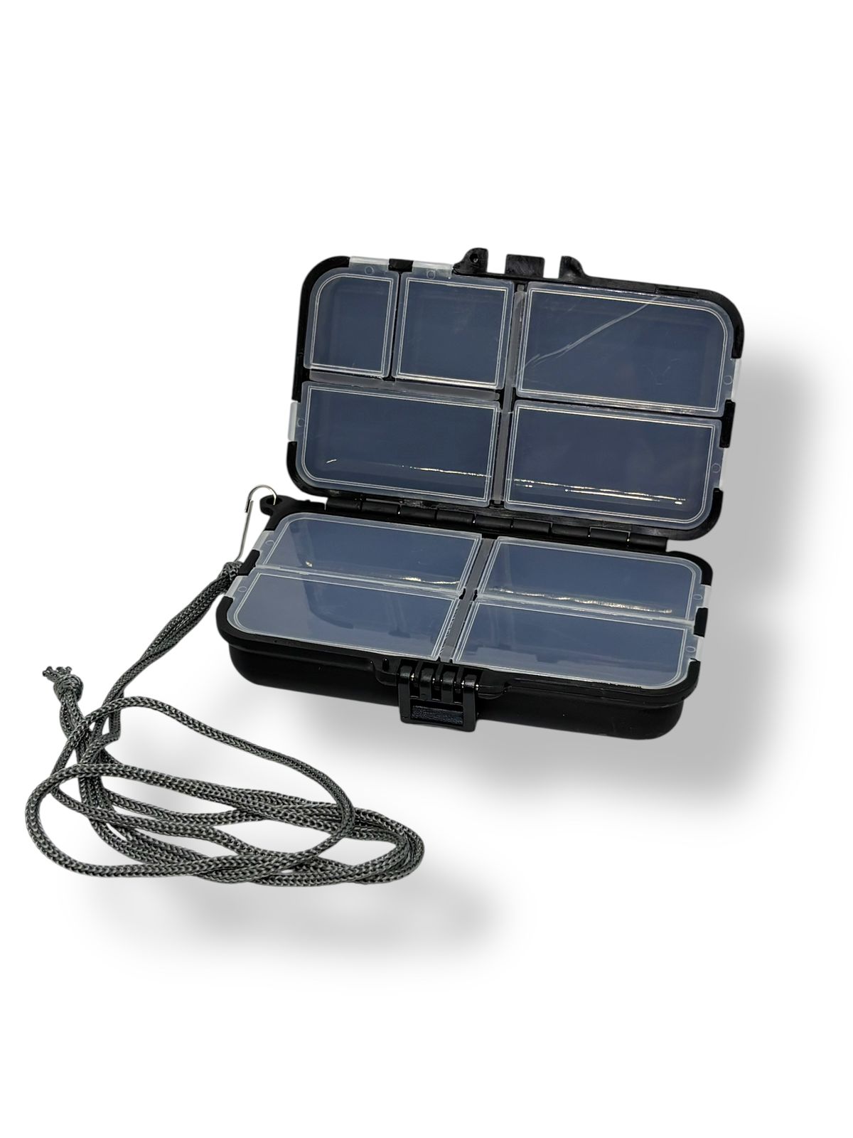Fabricado em plástico de alta resistência, o estojo é resistente à água, o que garante segurança extra em ambientes aquáticos. Seu sistema de trava de segurança mantém os itens protegidos mesmo em movimento. Internamente, conta com 9 compartimentos fixos para acomodar anzóis, giradores, snaps, argolas e outros itens essenciais.