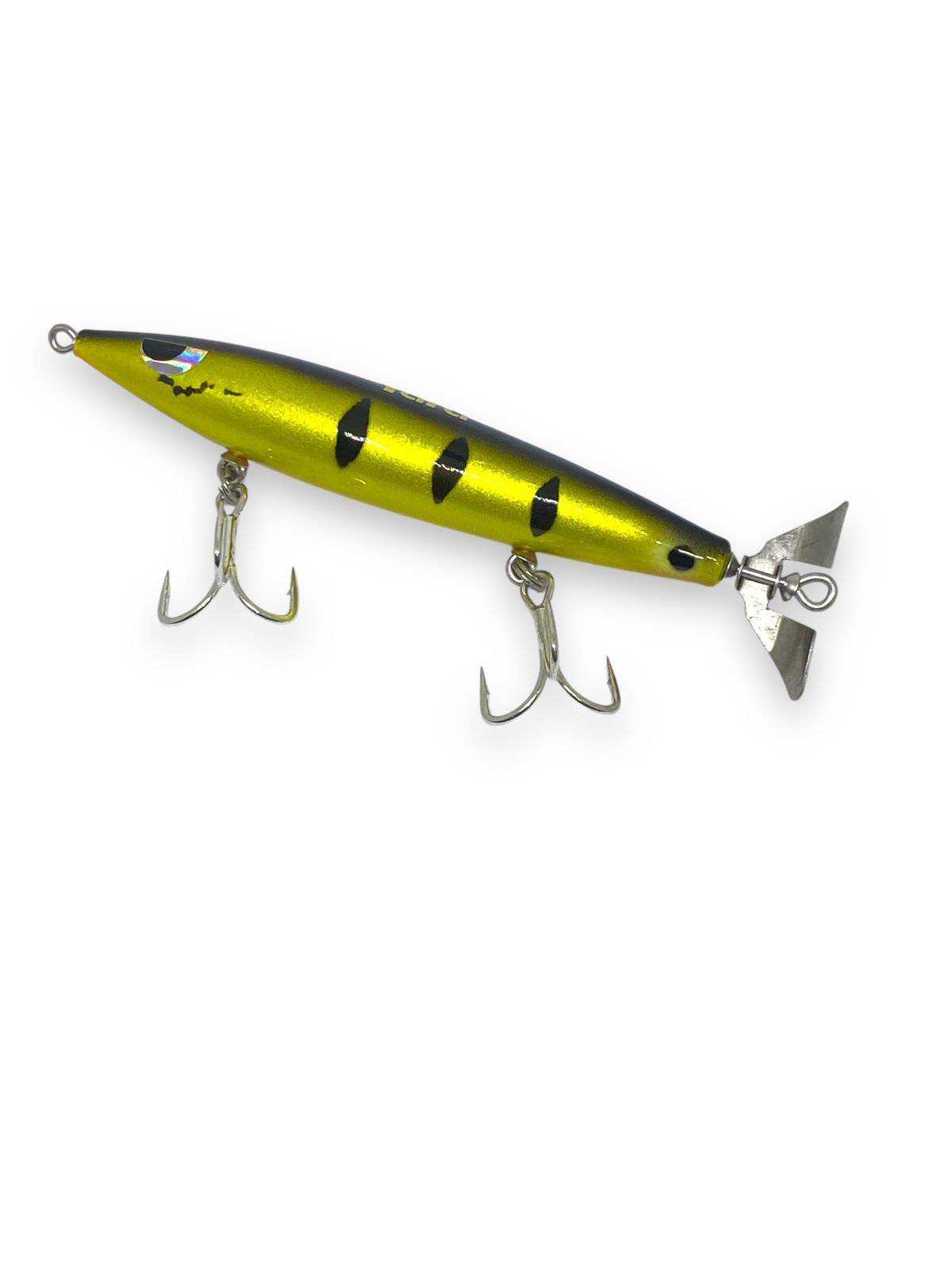 A Devassa é fabricada em madeira leve e resistente, possui pitões e hélice em aço inox reforçado, além de garatéias 6X na cor vermelha.