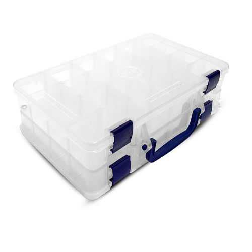 Estojo duplo com 44 divisões - com divisórias removíveis.