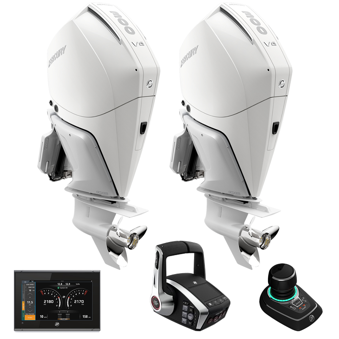 PARELHA MOTOR MERCURY VERADO 2X 300 HP EFI 4T V8 25-25" BRANCO C/ JOYSTICK E DTS COMANDO ELETRONICO