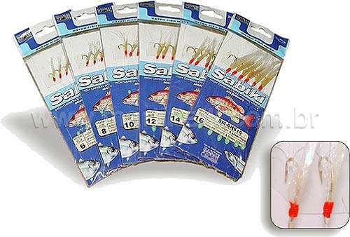 Chicote com 6 anzóis modelo MARUSEIGO já com isca (PENINHA e ESCAMA PRISMATICA).