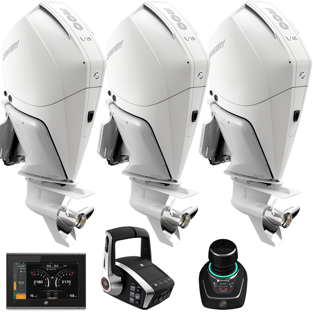 TRINCA (TRIO) MOTOR MERCURY VERADO 3X 300 HP EFI 4T V8 25-30-25" BRANCO C/ JOYSTICK E DTS COMANDO ELETRONICO